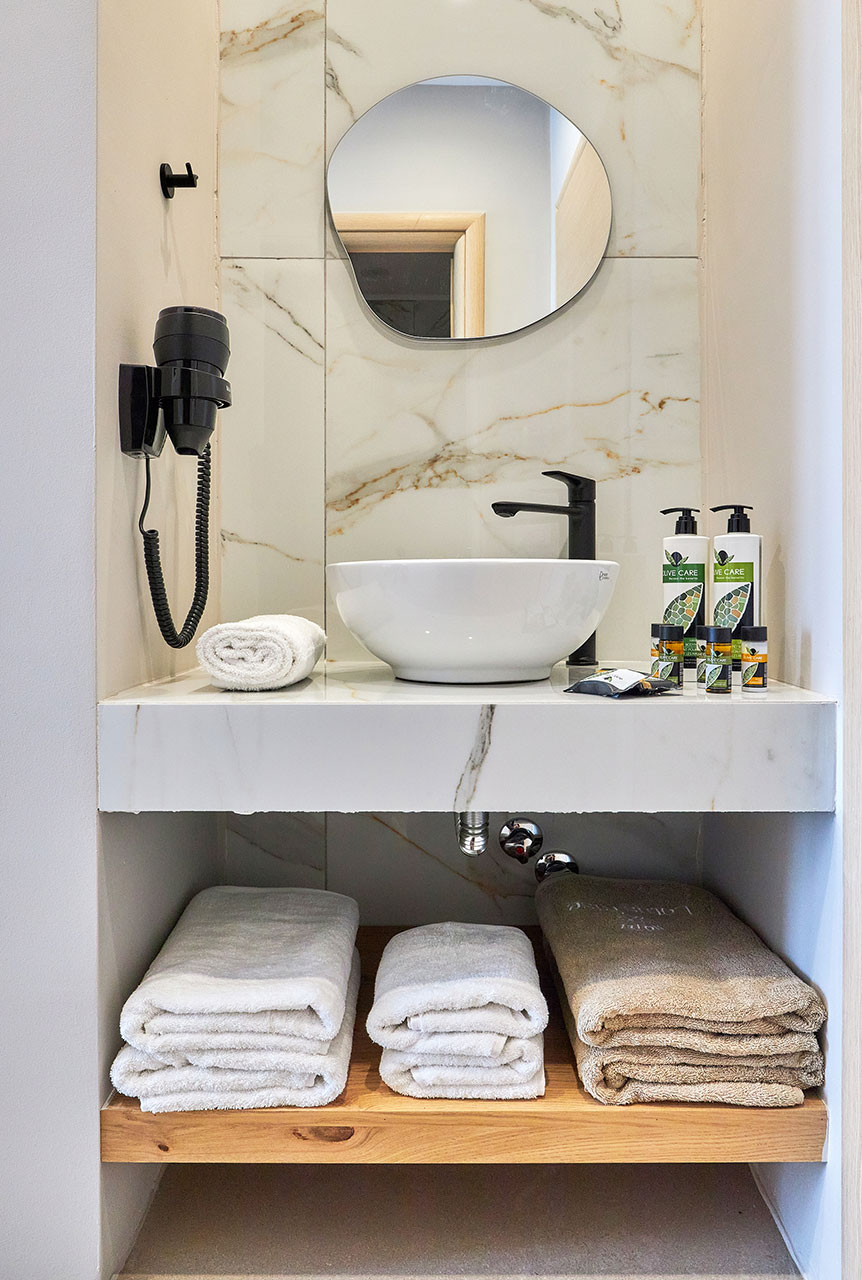 Experience modern comfort in our standard double room, which offers pool or side sea view.